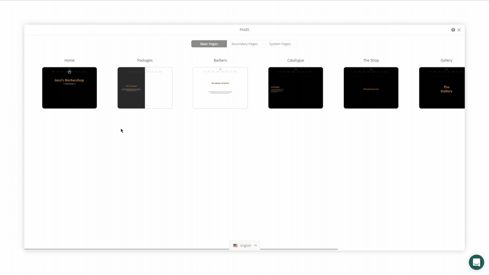 The pages are categorized by Main Pages, Secondary Pages, and System Pages. The Main Pages are visible on your site navigation and page menu, while the secondary pages appear when redirected from main pages through internal links.