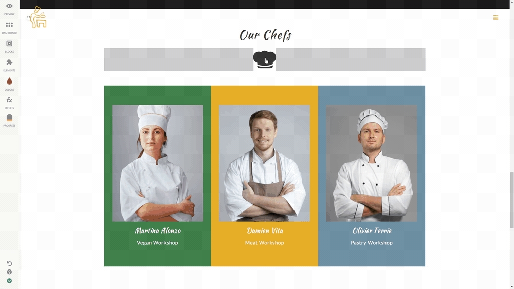 To add one, just drag and drop the Icon Element from the Elements Section to the Crafting Area.