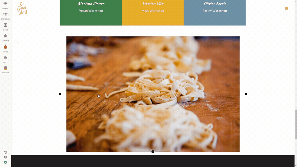 Adding images to your website is a great way to make it more eye-catching and visually appealing. To add an image, photo or any kind of graphical file, you just need to drag and drop the ‘Image’ Element to the crafting area.