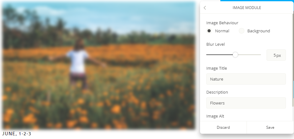 Just add a sense of activity with Blur effect to blur your images and highlight your text. Go to your Image Settings and move the pointer to make your images blurry.