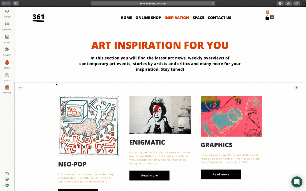 Blank Space is also useful when you simply want to keep a block but not have visible elements within in. Since your blocks get deleted when you remove all your elements, using Blank Space is a good way to have an "empty" block on your page. You can then adjust the space to any size and dimension you want!