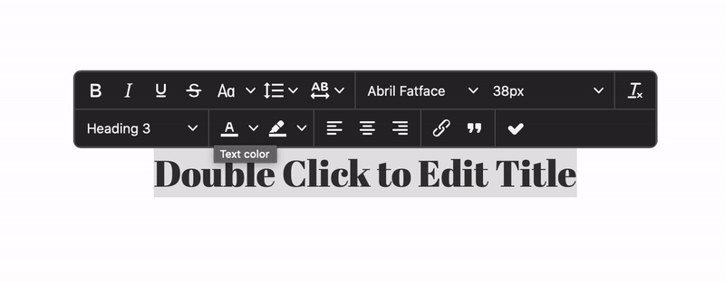 To add a title, simply drag and drop the 'Title Element' from the left tool panel's Elements section to your crafting area. Once added, double click to change the text. You can customize your element using the Text Editor that shows up above.