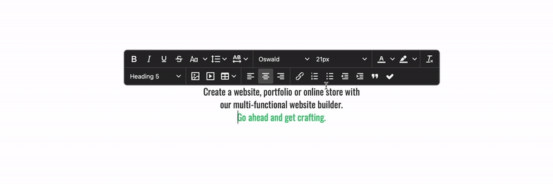 To emphasize your text use the ‘Text Color’ tool and select the desired color shade, or click the palette icon in the bottom right of the window to create a Custom Color with the help of the Color Picker.