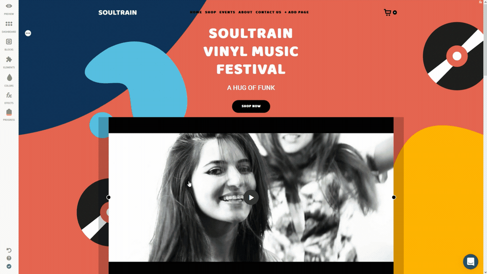 To enrich your site's multimedia go ahead and add a Video Element from the Elements section just dragging and dropping the βVideoβ icon to the Crafting Area.
