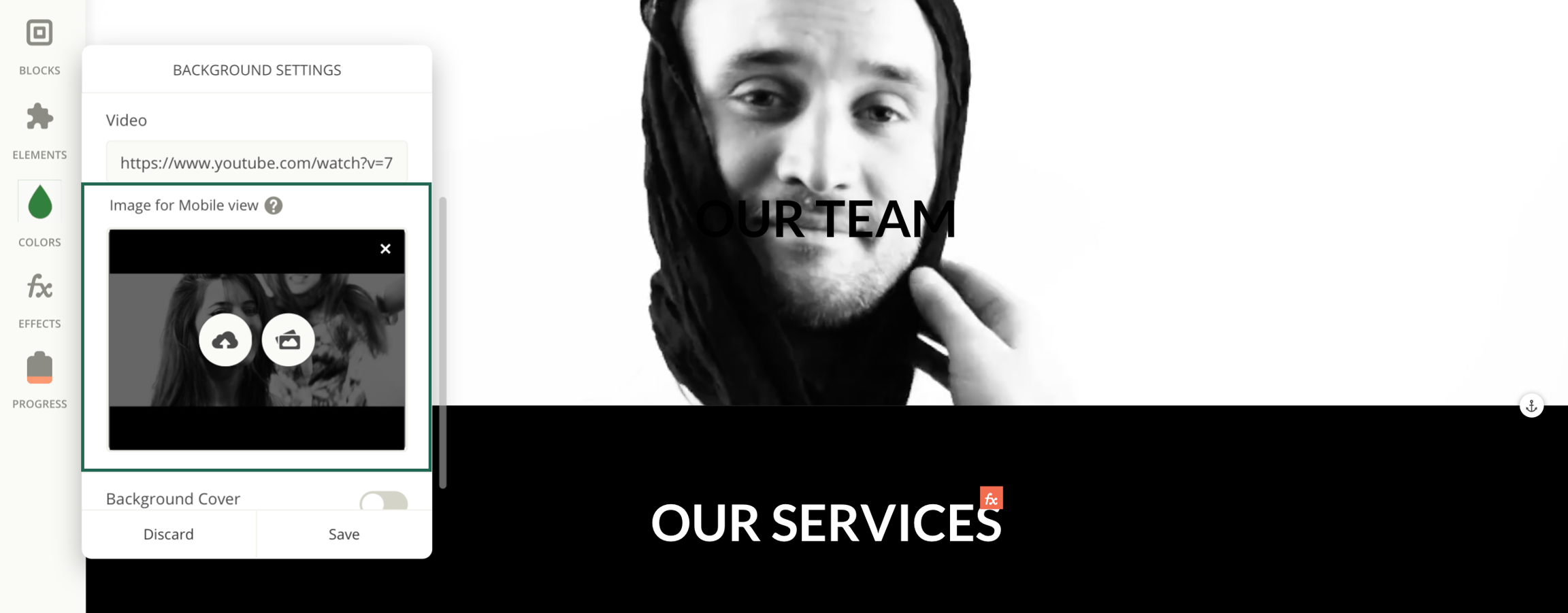 You can choose an Image that will appear on Mobile View instead of the Video Background. Browse your Files or add one from Media or the Free Stock.