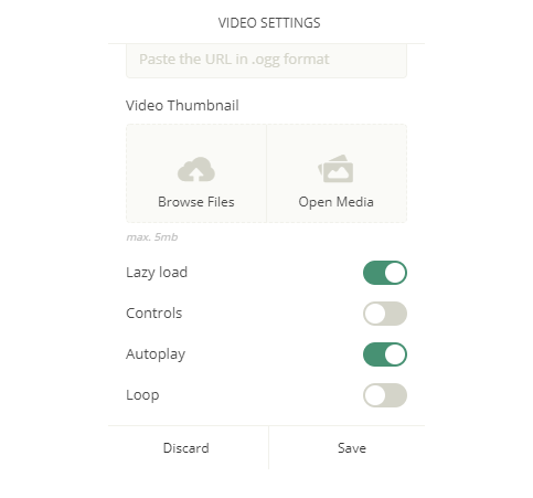 Besides embedding a video, you can choose an Image from your PC or the Free Stock as a Thumbnail here to be displayed on your page instead of the video and resize it using the controllers.