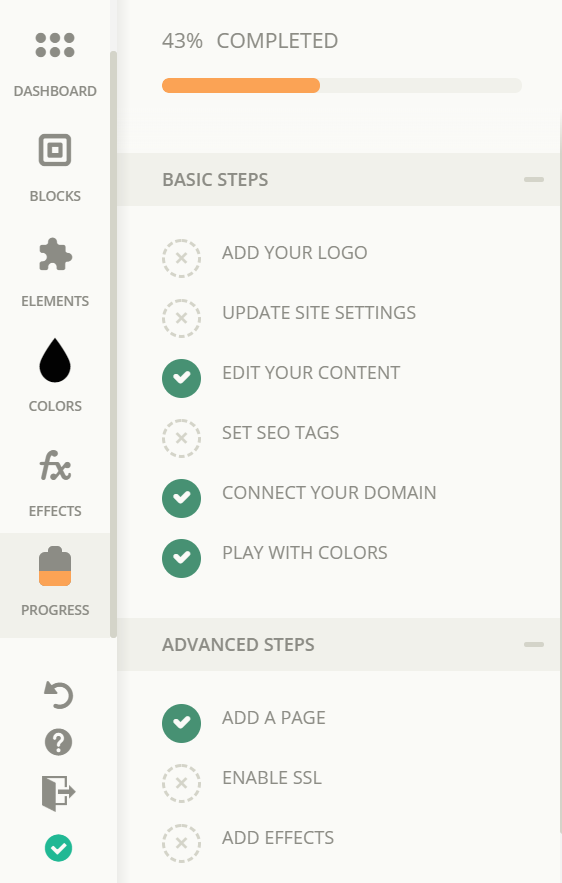 Make sure to check all of the steps from the Progress tab when creating your website ☝😊